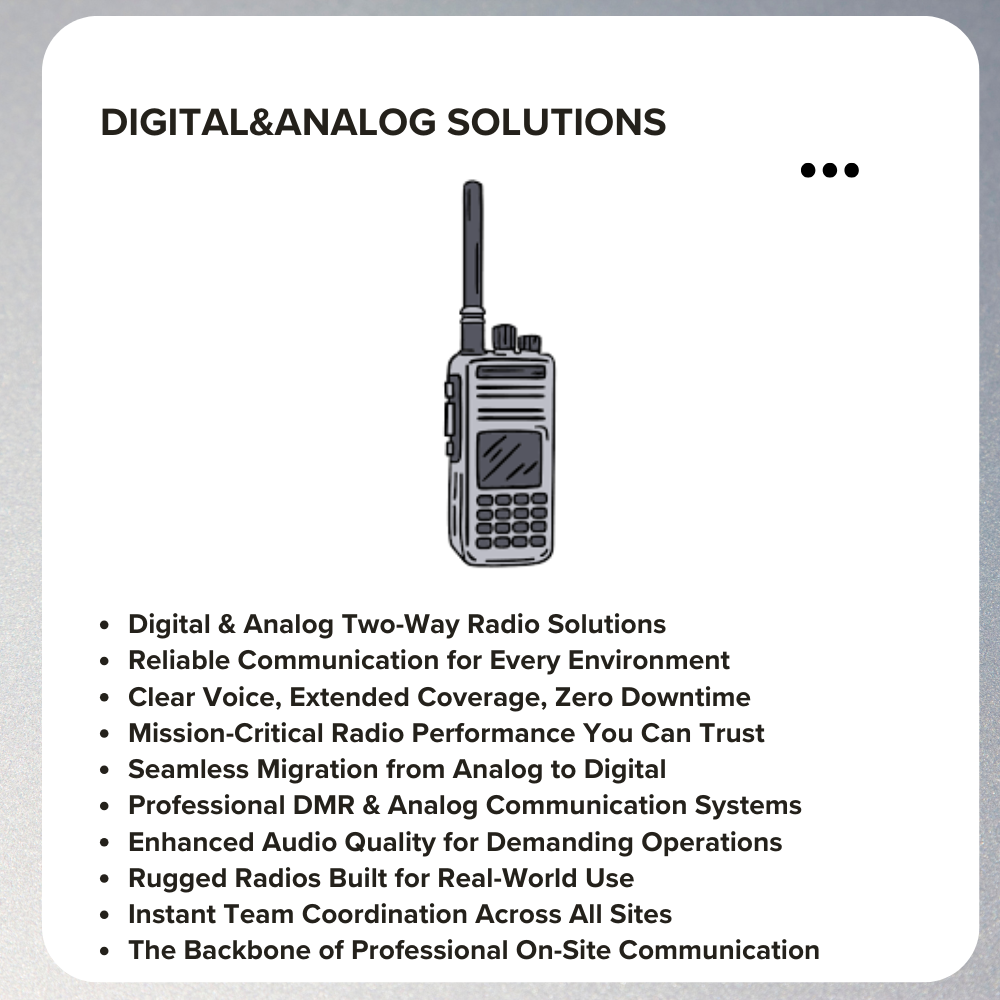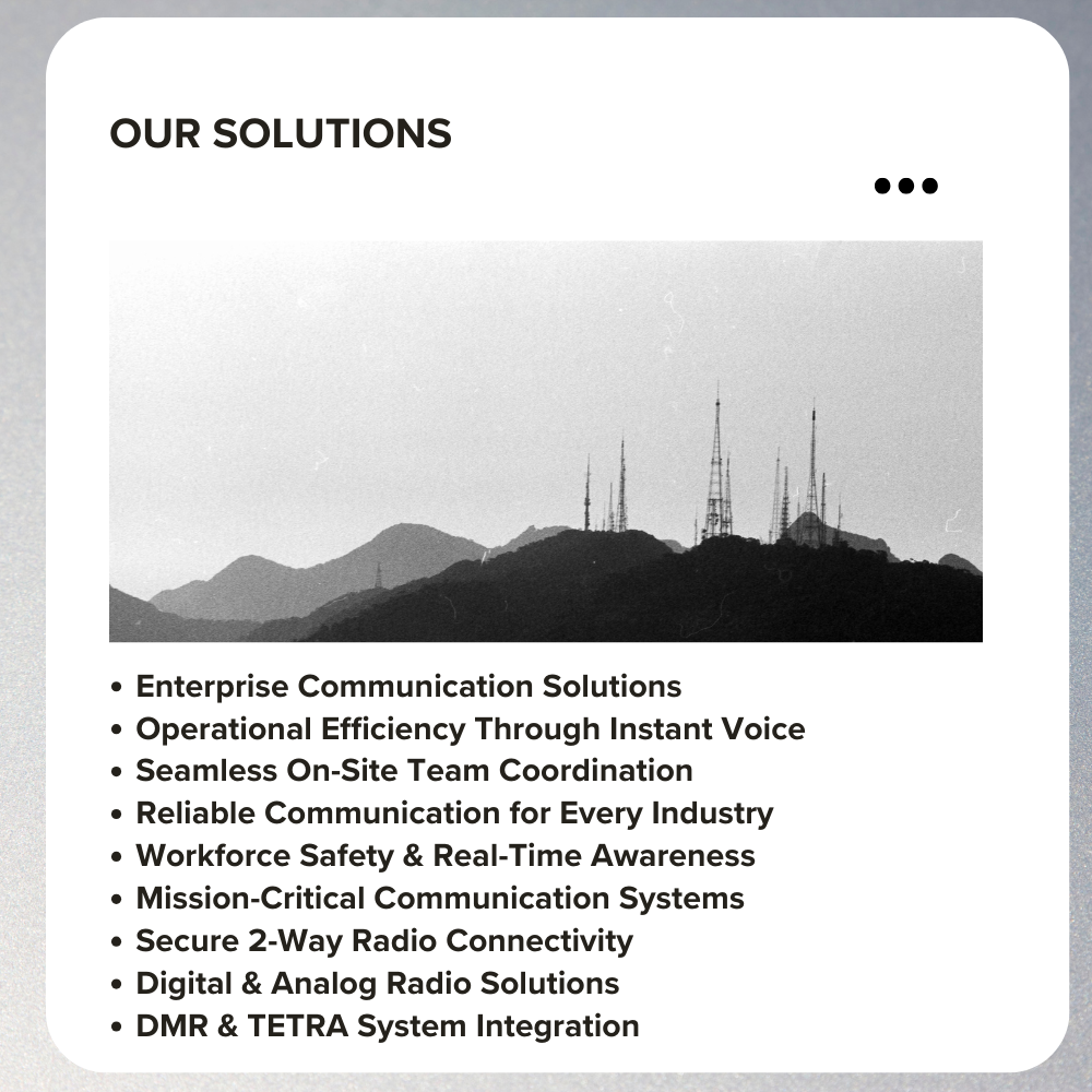 Specialized TETRA, MOTOTRBO DMR, WAVE PTX (PoC) systems, professional two-way radios and Motorola Solutions repeaters.